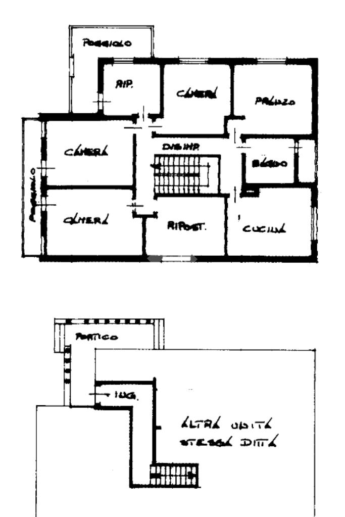 Da un ampio portico d'ingresso, saliamo tramite una scala interna al nostro ampio e luminoso appartamento con altezza 3m e che si sviluppa tutto al piano primo.