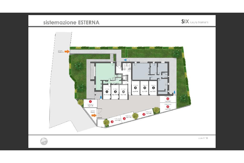A completare la soluzione garage singolo al piano terra e posto auto interno di proprietà.